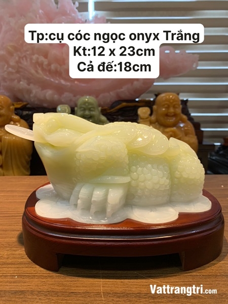 Hình tượng cụ cóc, với ý nghĩa phong thủy sâu sắc, từ lâu đã được coi là biểu tượng của sự chiêu tài, hút lộc, bảo vệ gia chủ khỏi những điều xấu xa và mang lại may mắn. Ngọc onyx trắng, với khả năng mang lại bình an và may mắn, giúp gia chủ luôn gặp những điều tốt lành. Sự kết hợp giữa hình tượng cụ cóc và ngọc onyx trắng tạo nên một tác phẩm phong thủy giá trị, mang đến những điều tốt lành cho gia chủ.