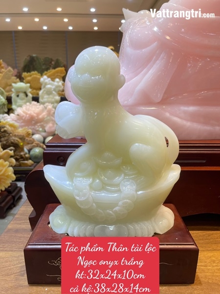 Hình tượng khỉ, với ý nghĩa phong thủy sâu sắc, từ lâu đã được coi là biểu tượng của sự thông minh, nhanh nhẹn, tài lộc và may mắn. Ngọc onyx trắng, với khả năng mang lại bình an và may mắn, giúp gia chủ luôn gặp những điều tốt lành. Sự kết hợp giữa hình tượng khỉ và ngọc onyx trắng tạo nên một tác phẩm phong thủy giá trị, mang đến những điều tốt lành cho gia chủ.