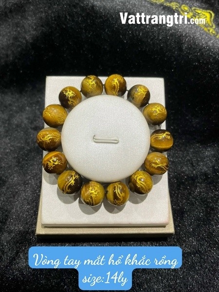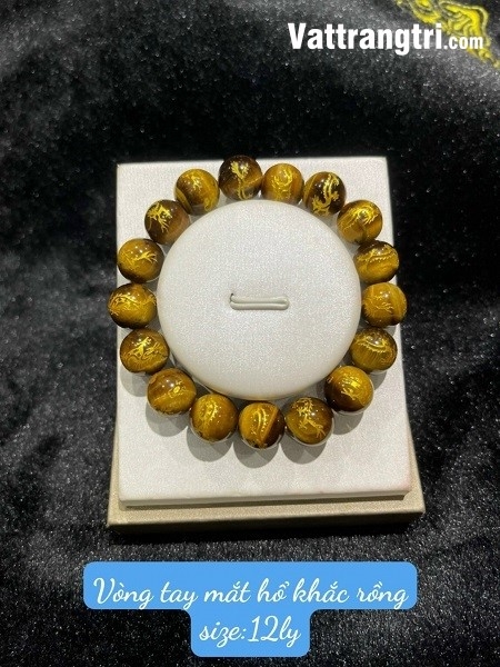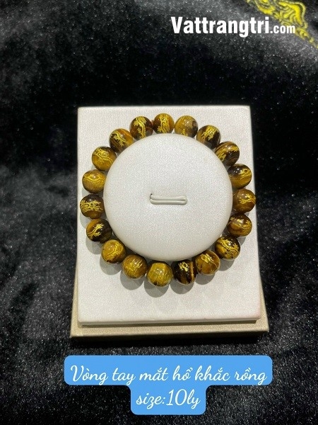 Vòng tay đá mắt hổ khắc rồng vàng với kích thước hạt đa dạng từ 8-14ly là một kiệt tác của ngành kim hoàn, mang trong mình năng lượng tích cực và ý nghĩa phong thủy sâu sắc. Với thiết kế tinh tế, từng viên đá mắt hổ với những đường vân độc đáo được khắc họa hình rồng vàng uy nghiêm, tạo thành một chuỗi vòng hoàn hảo, tượng trưng cho sự may mắn, tài lộc và sức mạnh.